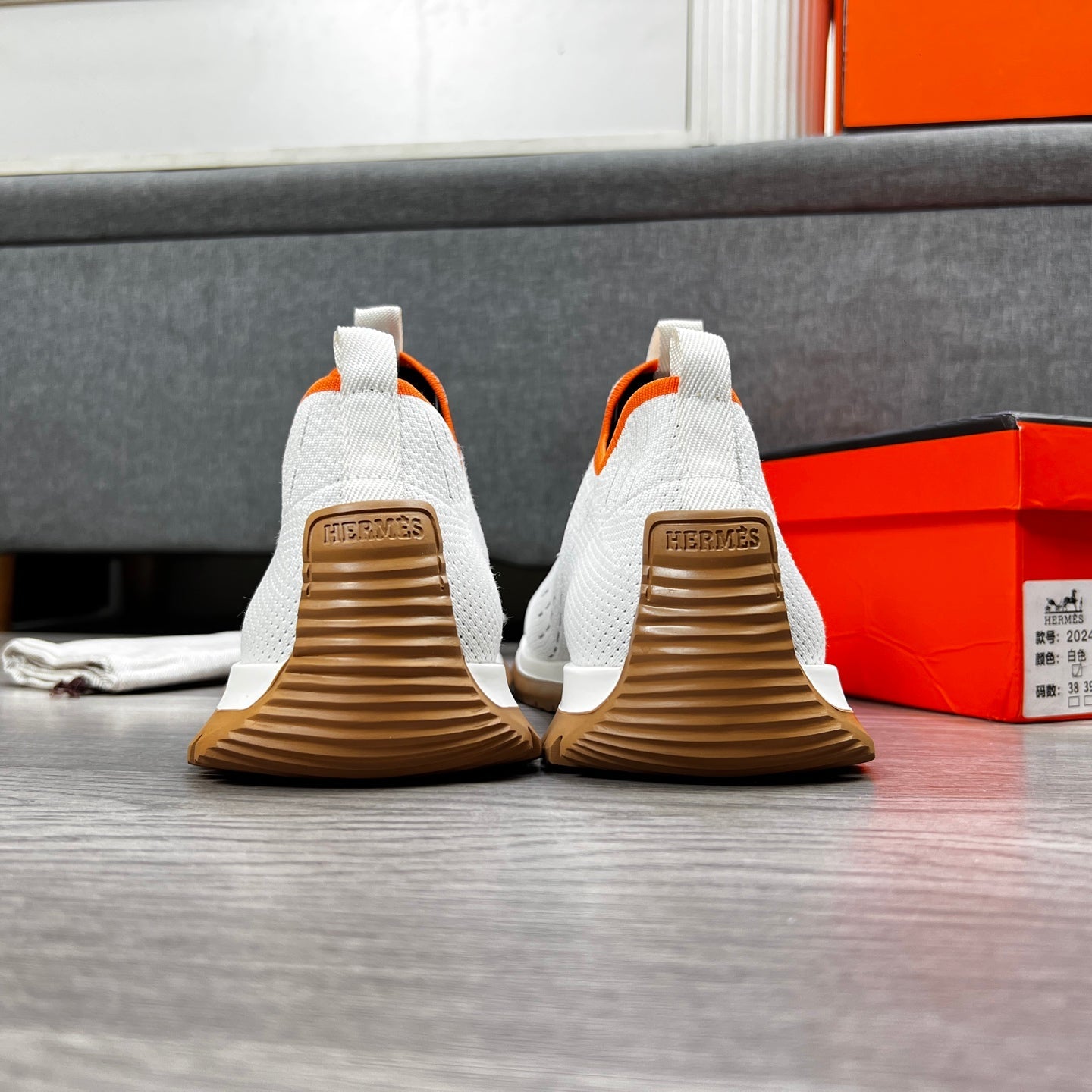 HM Men's Slip on Sneaker White Orange Flyknit Fabric 690061