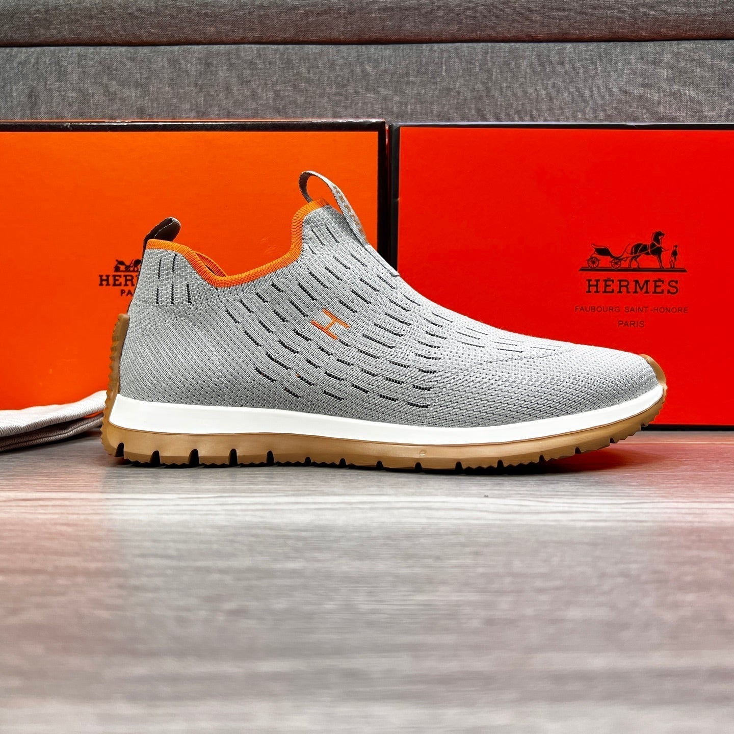 HM Men's Slip on Sneaker Grey Orange Flyknit Fabric 690060