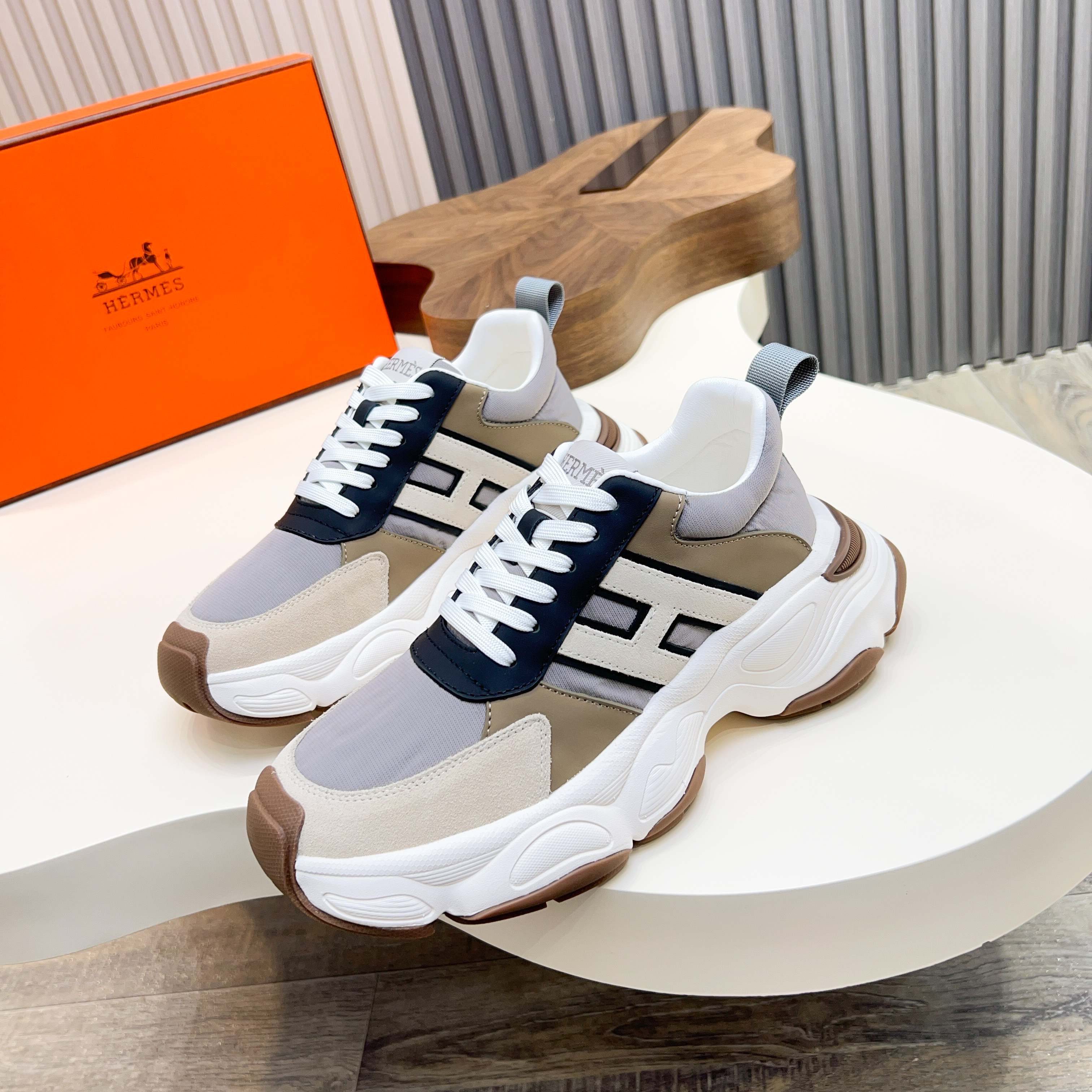 HM Men's Sneaker Beige Cowhide Fabric 603857