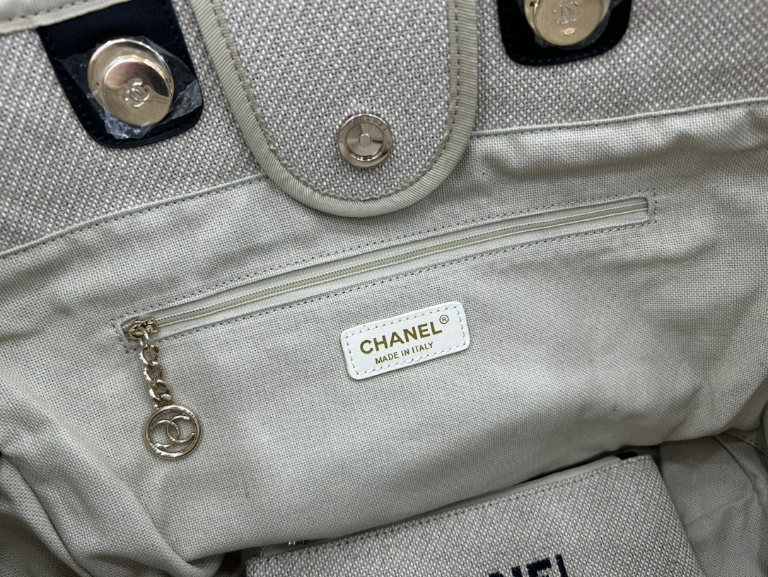 CC Deauville Tweed Bag Black Leather Gold Hardware 34