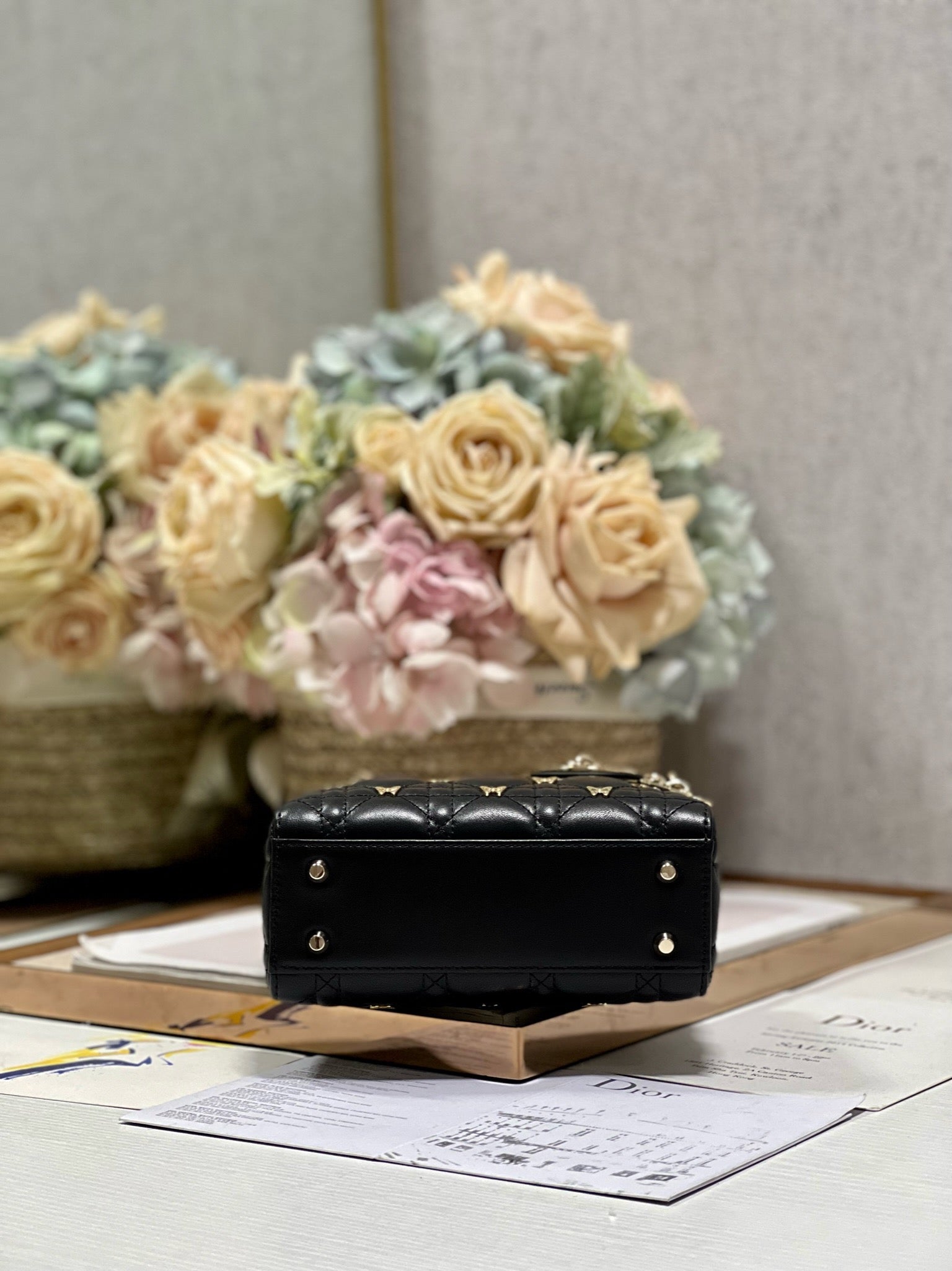 MINI LADY 17 BUTTERFLY STUD BLACK LAMBSKIN