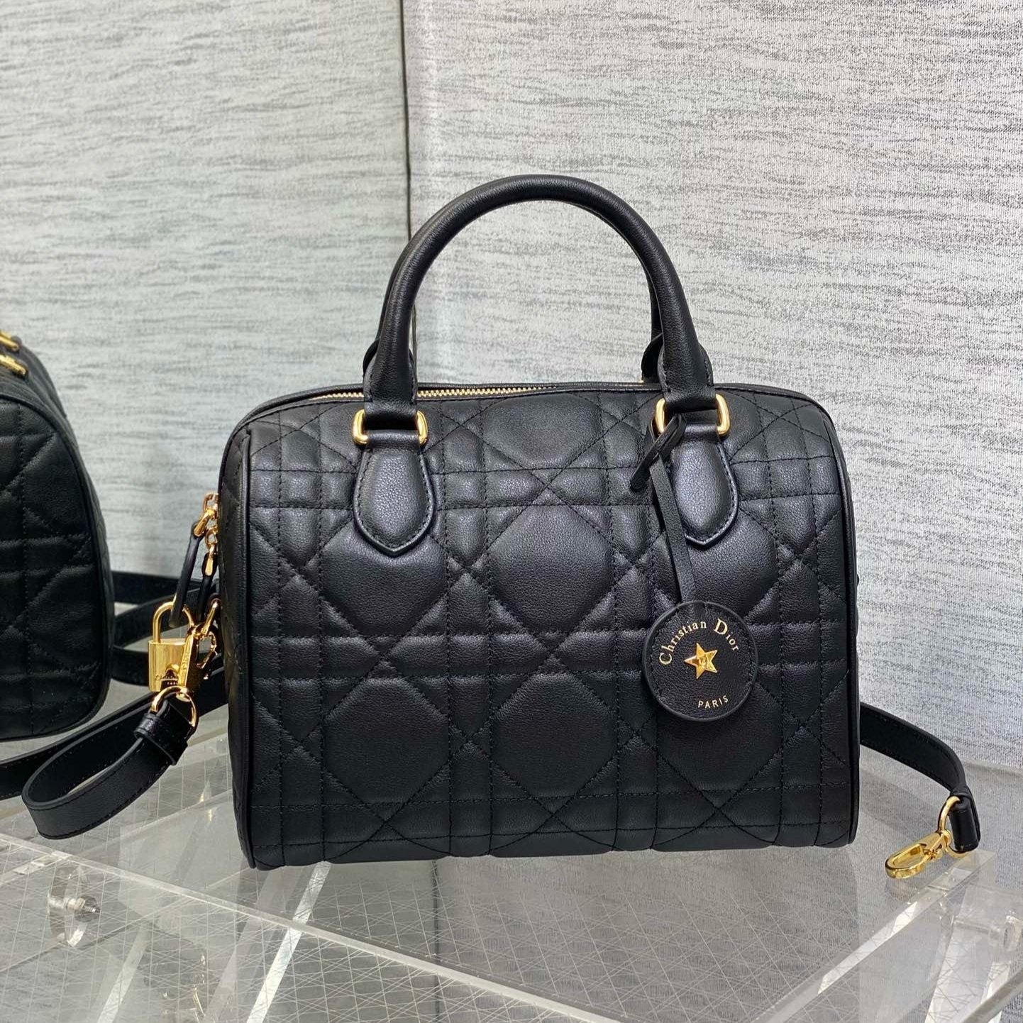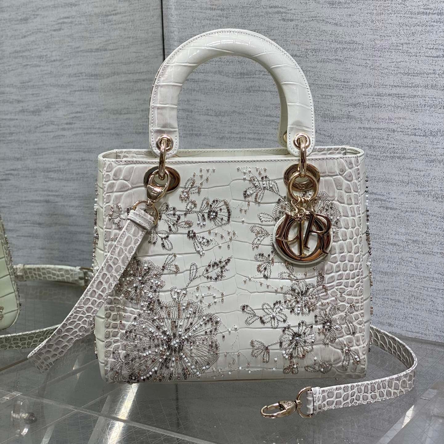 MEDIUM LADY D-JOY 26 WHITE LATTE CALFSKIN PEARL