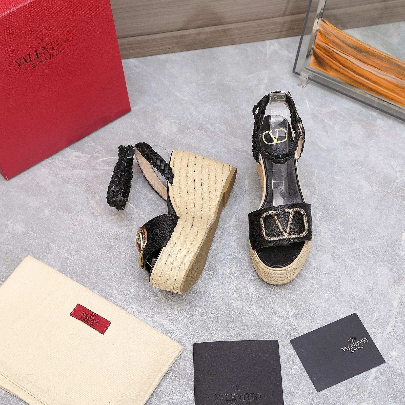 VT Wedge Platform Sandals Black Cowhide Espadrilles 363030