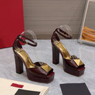 Open Toe Pump With One Stud Gold Patent Burgundy Leather 130MM