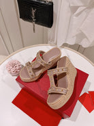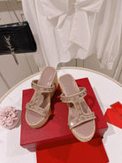 Rockstud Laminated Nappa Wedge Sandal Poudre 10cm