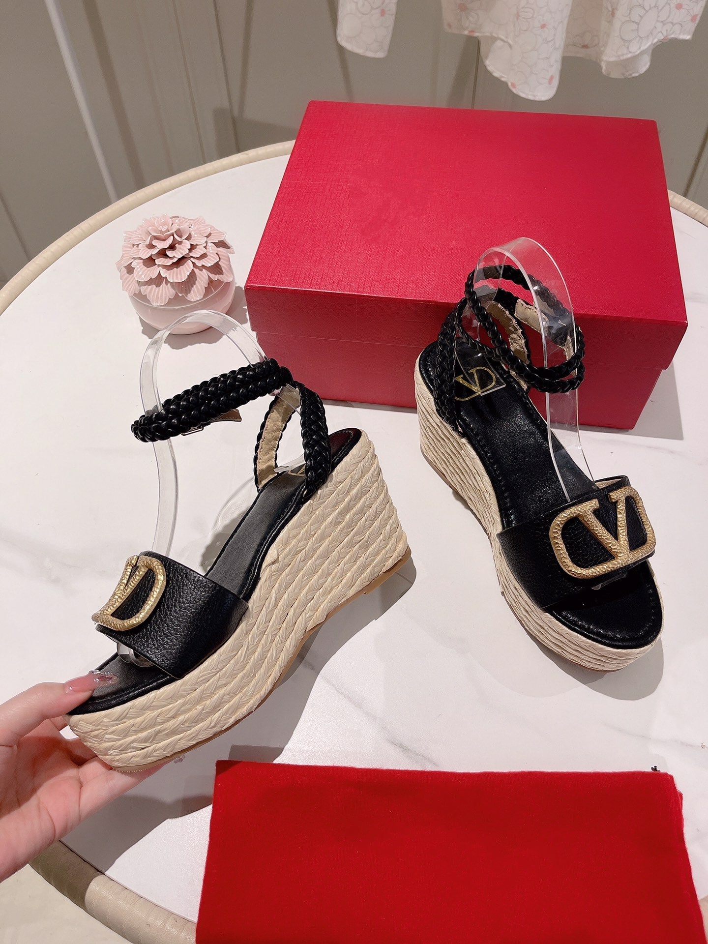 - Nylon rope wrapped wedge heel-10cm waterproof platform-5cm