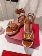 VLogo Signature Calfskin Wedge Sandal 90mm Burgundy