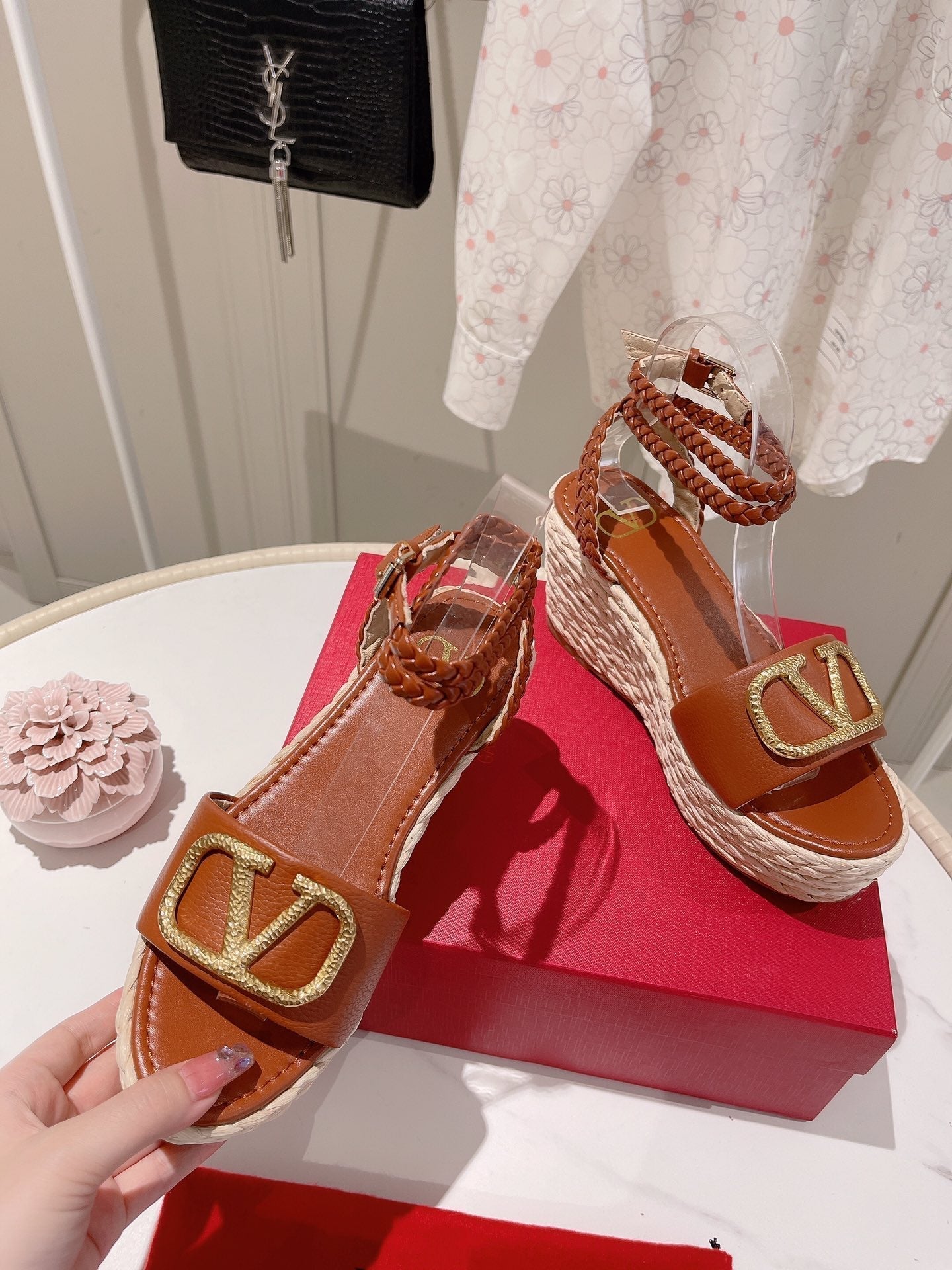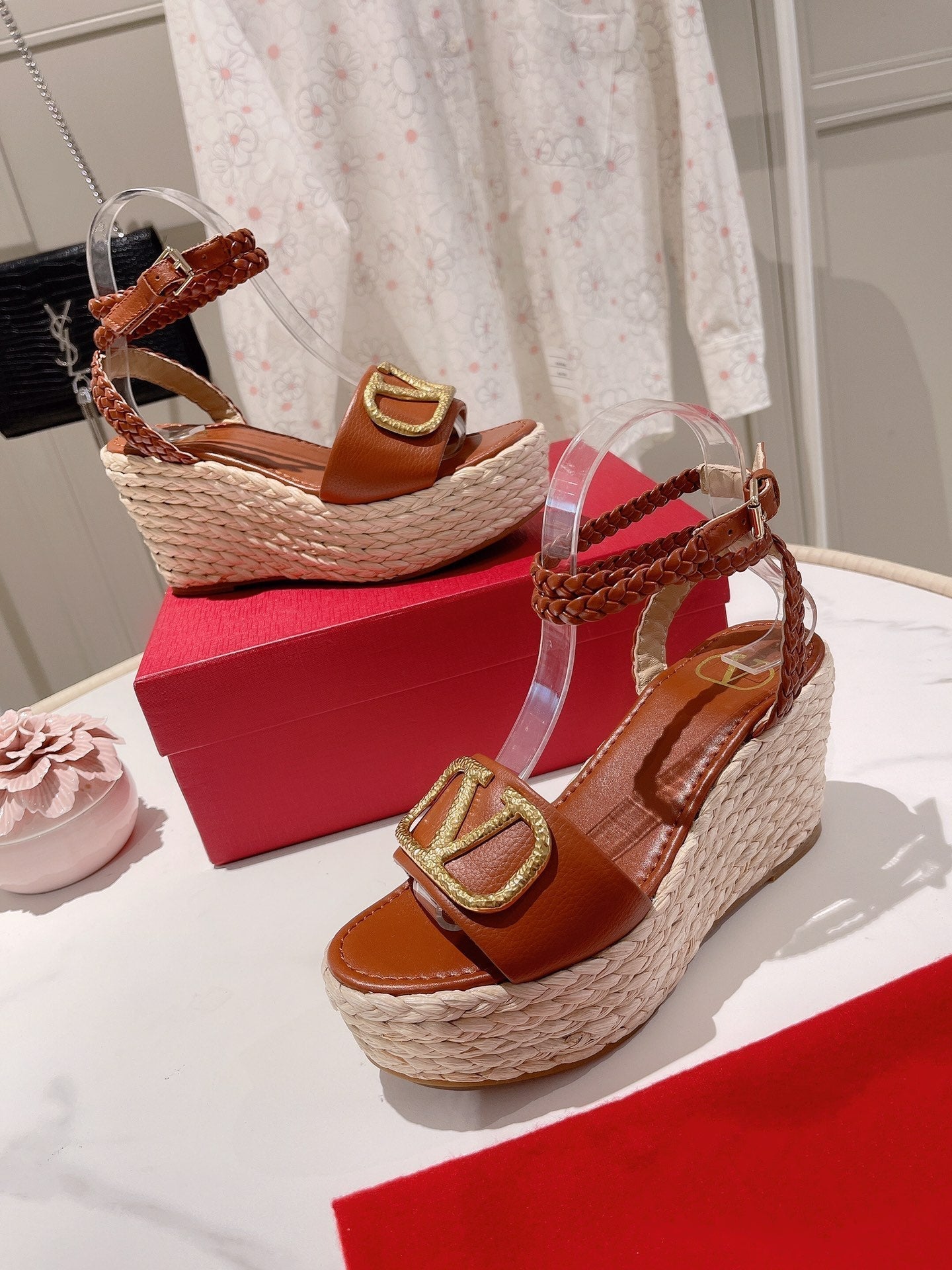 • Nylon rope wrapped wedge heel-10cm waterproof platform-3cm