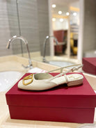 VLOGO WHITE LEATHER SLINGBACK FLATS