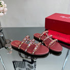 VT 25 Rockstud Flat Sandals Ruby Red PVC Sheepskin