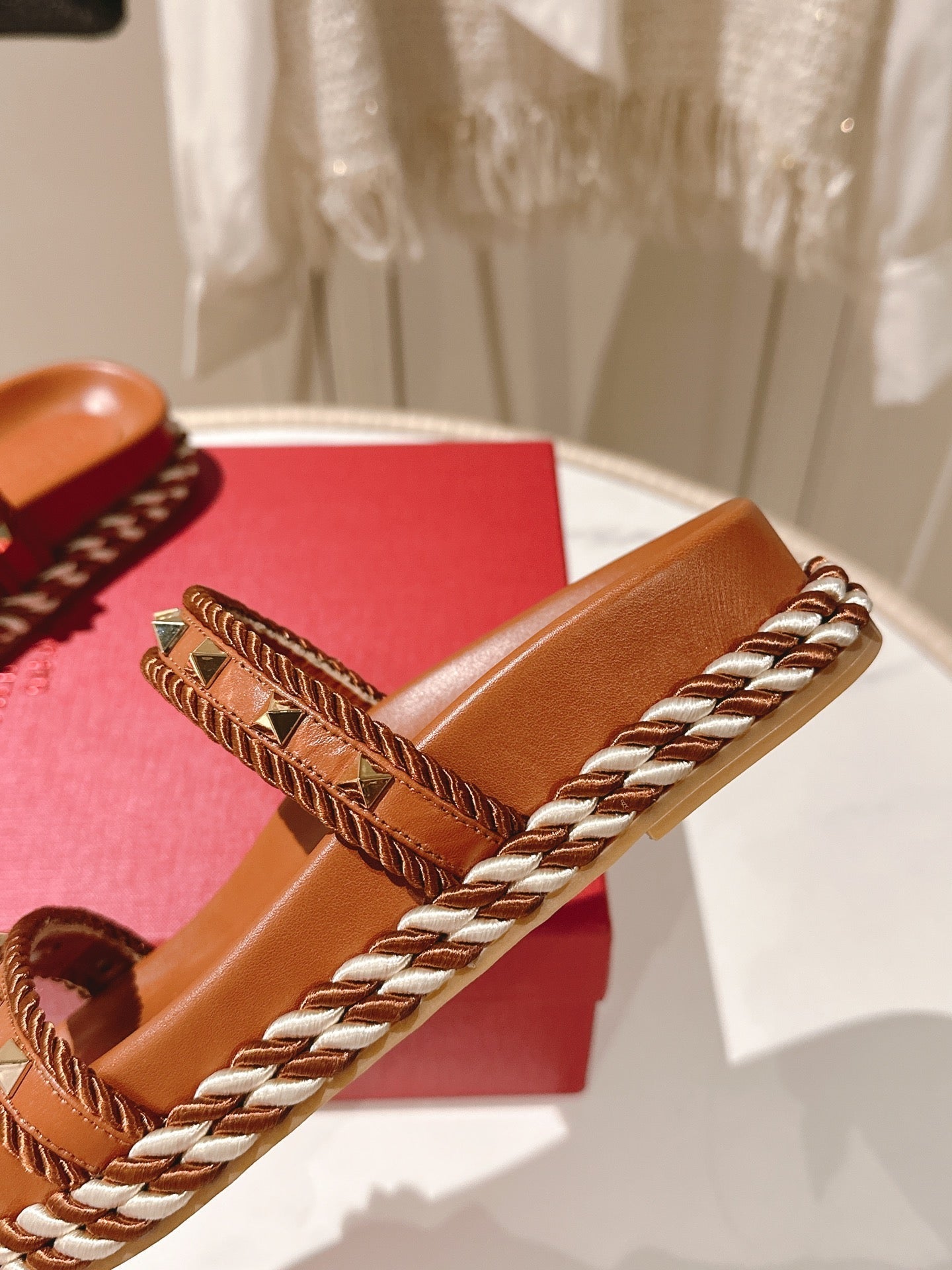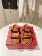 VT Rockstud Sandals Brown Espadrilles Cowhide 328127