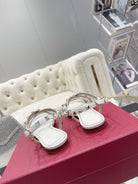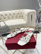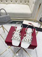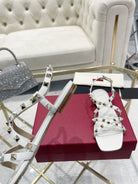 Rockstud 1cm Square Toe White Leather Sandals
