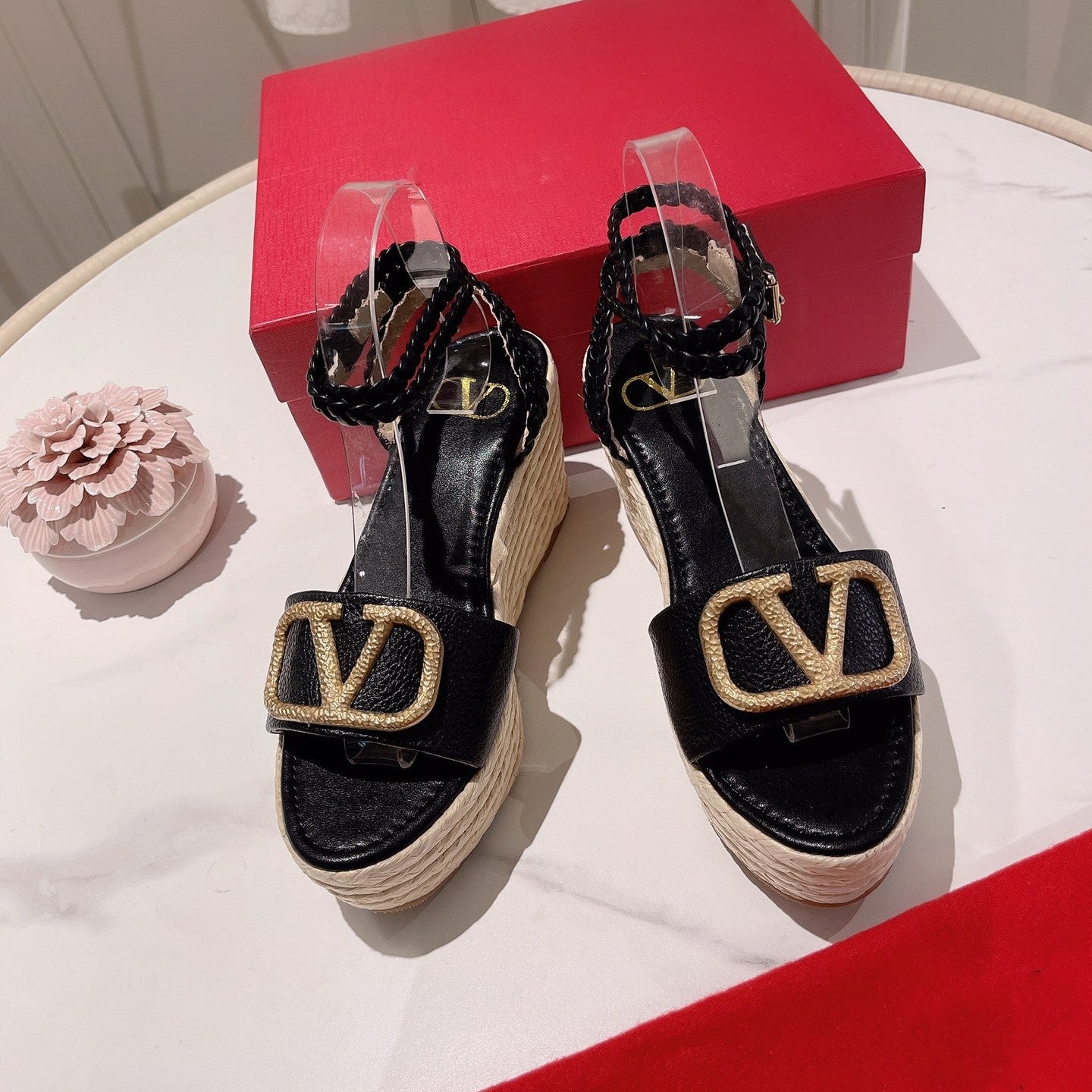 Rockstud Crisscross Espadrilles 80mm Sandal Wedges Black