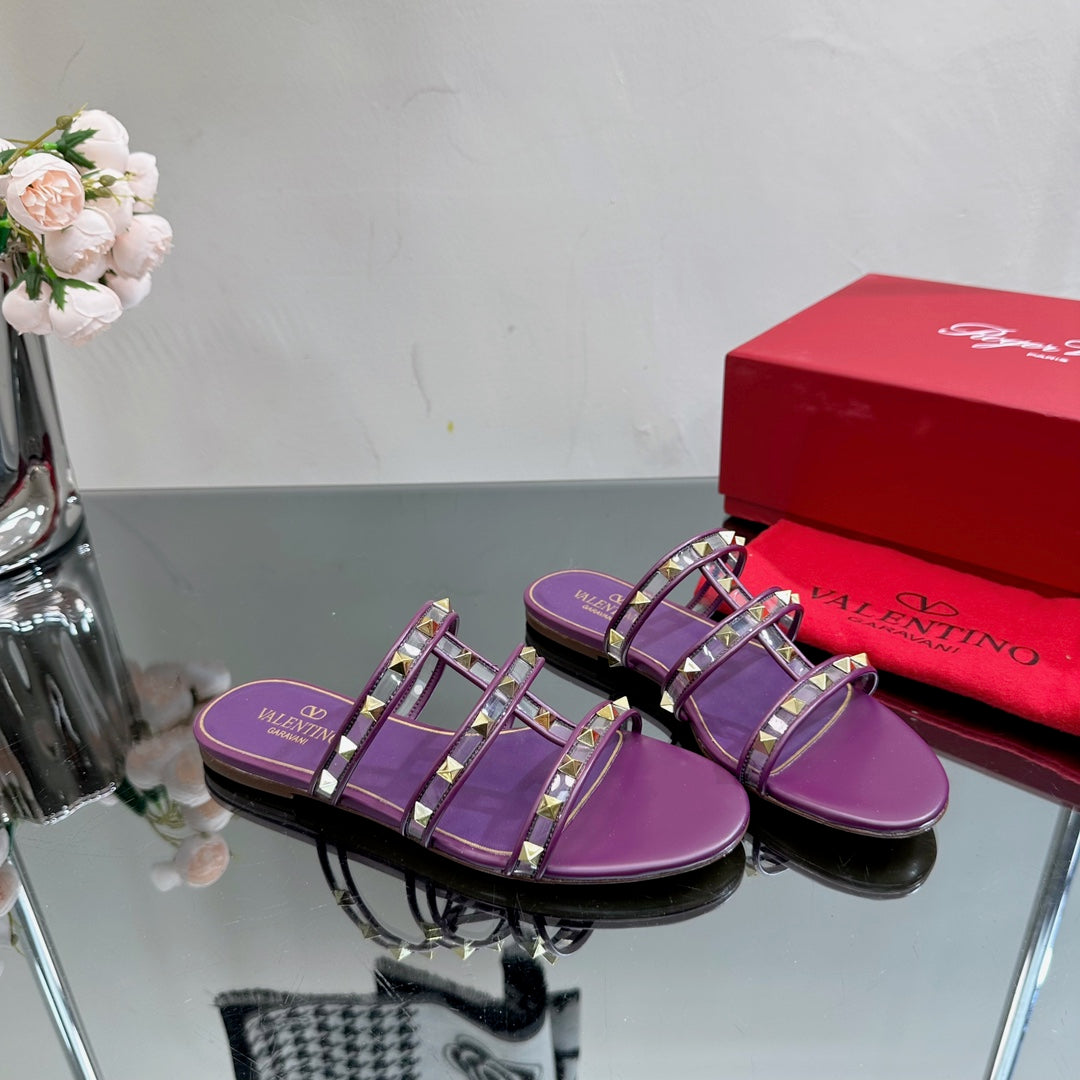 VT 25 Rockstud Flat Sandals Purple PVC Sheepskin