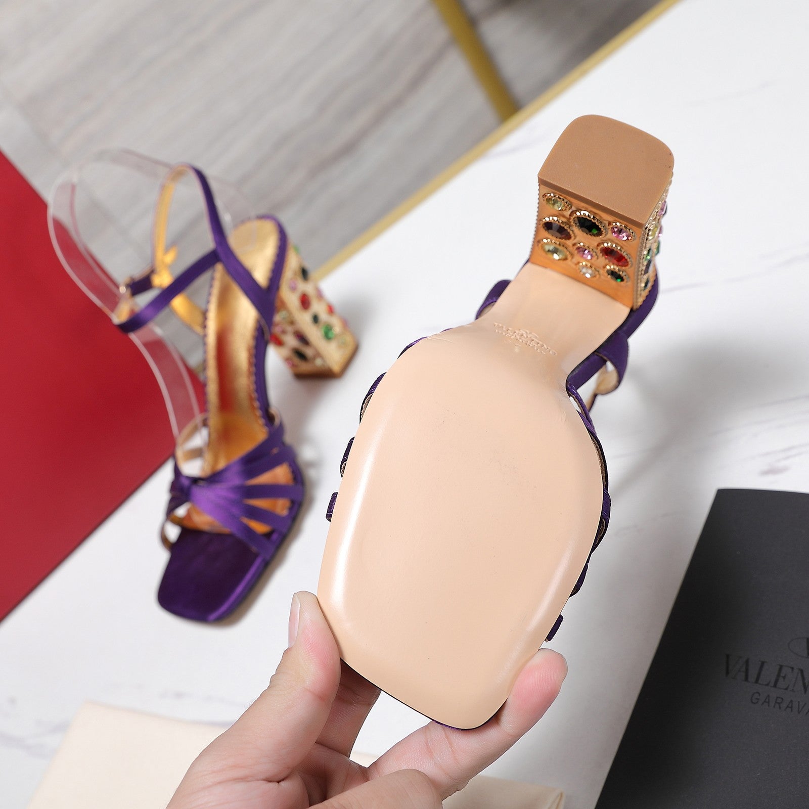 VT 2025 Diamond Heel Sandals Purple Cowhide 289512