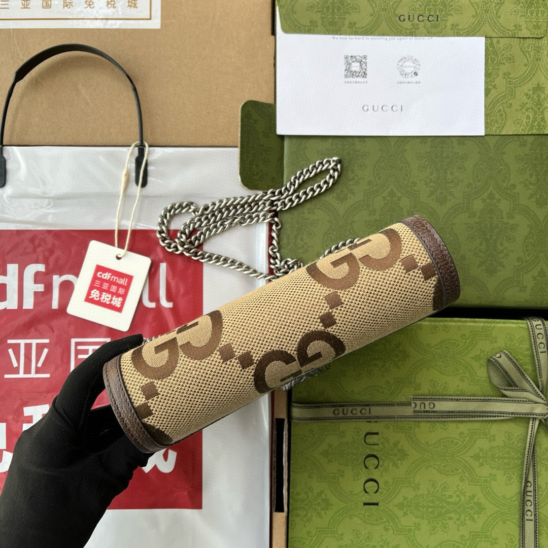 Gucci Jumbo Dionysus Wallet On Chain Brown Canvas and GG Original Leather