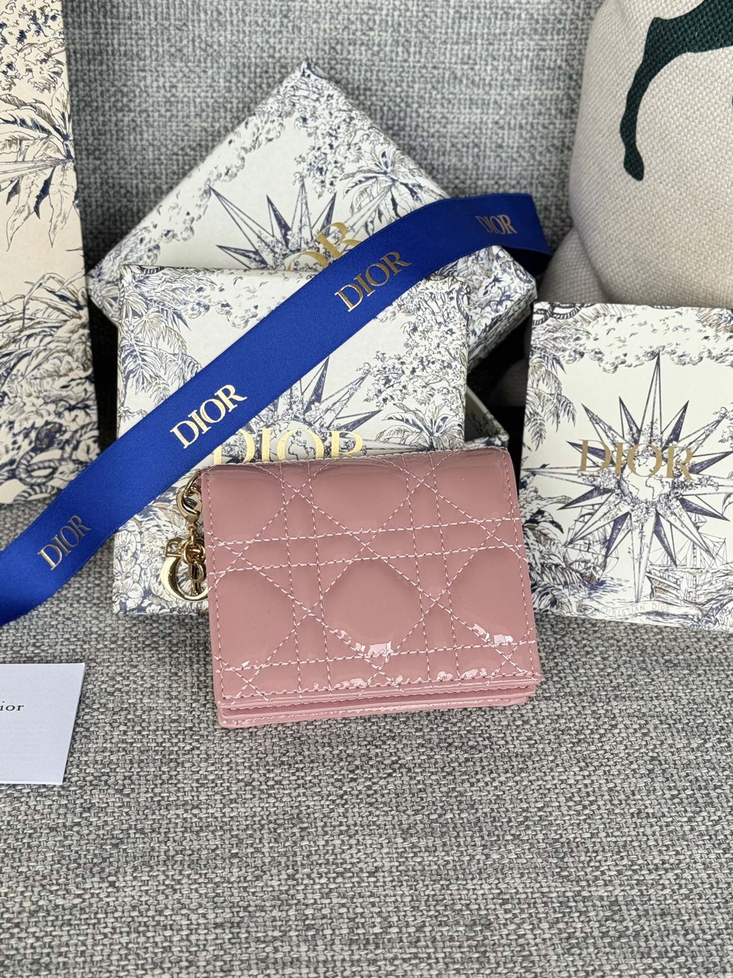 CD Caro 11cm Compact Wallet Shiny Pink Calfskin