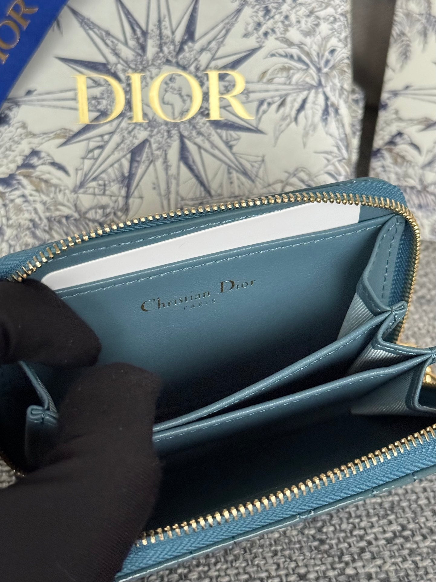 CD Logo Caro 11cm Compact Wallet Shiny Teal Calfskin