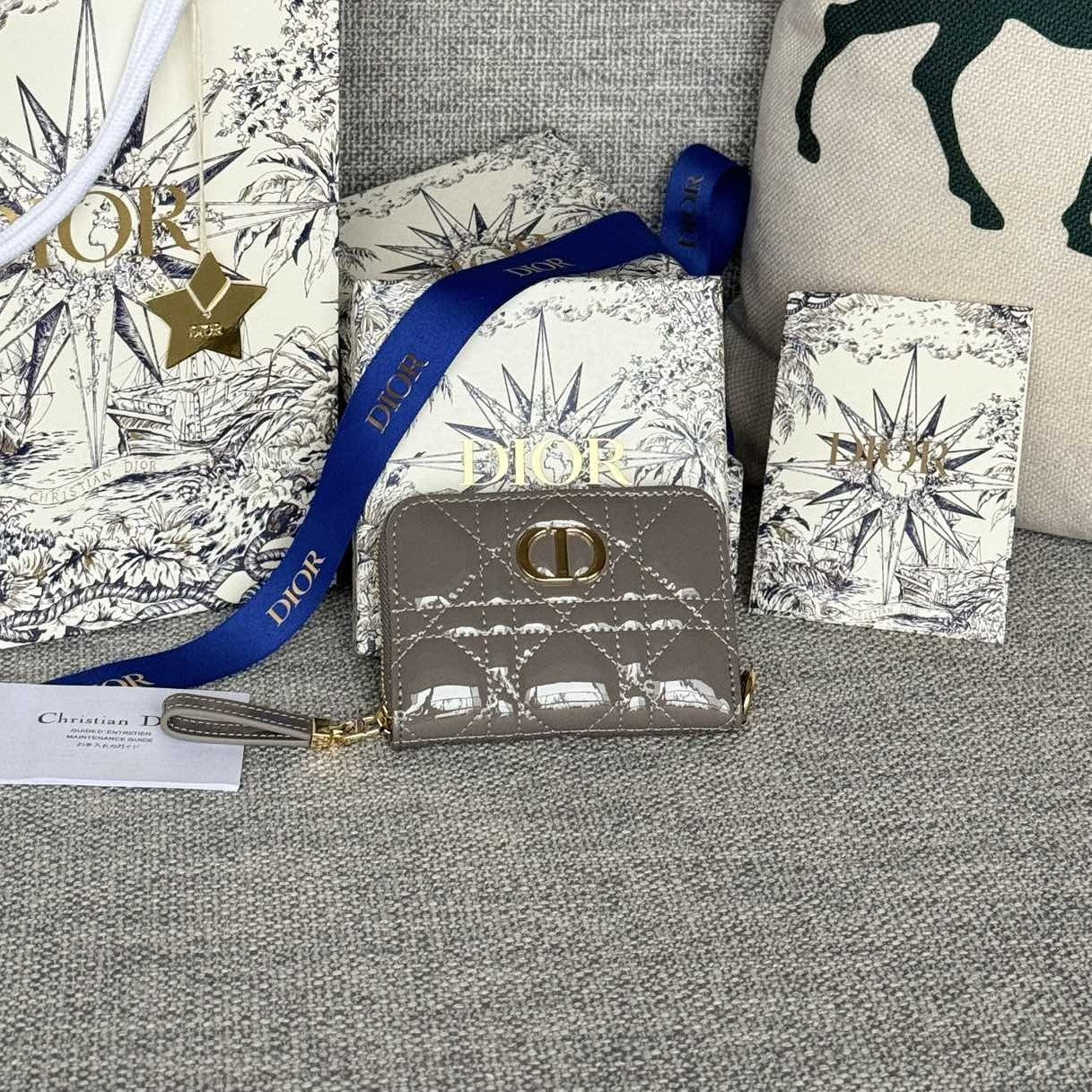 CD Caro 11cm Compact Wallet Shiny Dark Beige Calfskin