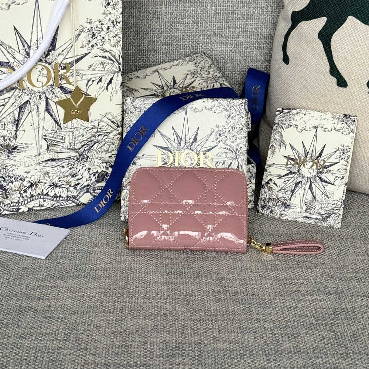 CD Caro 11cm Compact Wallet Shiny Pink Calfskin