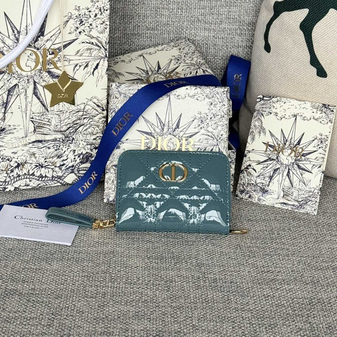 CD Caro 11cm Compact Wallet Shiny Teal Calfskin