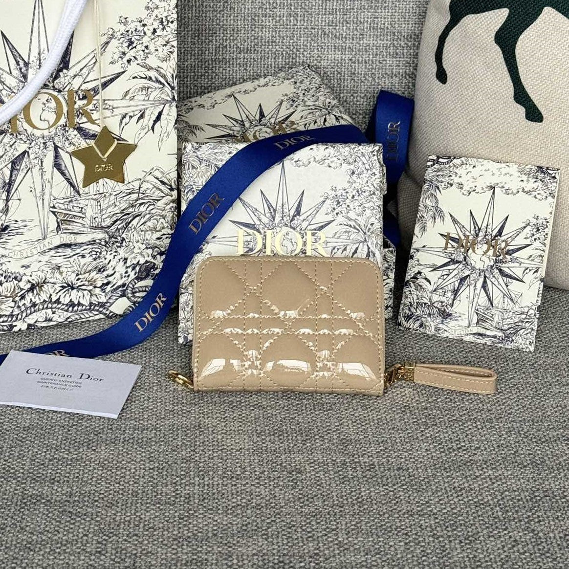 CD Caro 11cm Compact Wallet Shiny Beige Calfskin