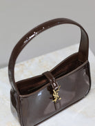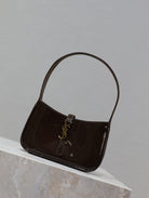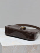 LE 5 À 7 MINI BAG 19 IN CHOCOLATE PATENT CALFSKIN GOLD LOGO
