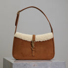 LE 5 À 7 SHOULDER BAG 25 IN BROWNIE SUEDE AND WHITE SHEARLING TRIM