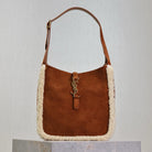 LE 5 À 7 SMALL SUPPLE 23 IN AMBER ORANGE SUEDE AND WHITE LAMB FUR TRIM