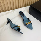 SL CHAIN ATTACH HEELED MULES CERULEAN DENIM