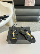Yves SL Buckle Women Sandals Black Leather