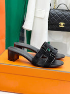 - Material: Sandal in velvet with iconic "H" cut-out.