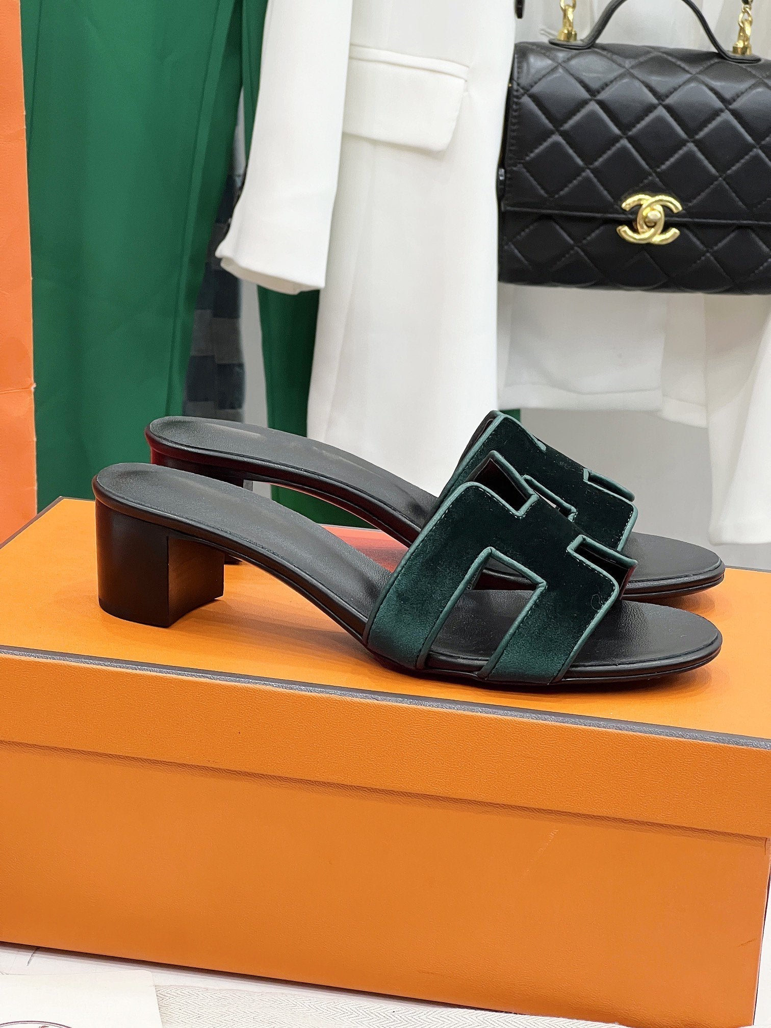 - Material: Sandal in velvet with iconic "H" cut-out.