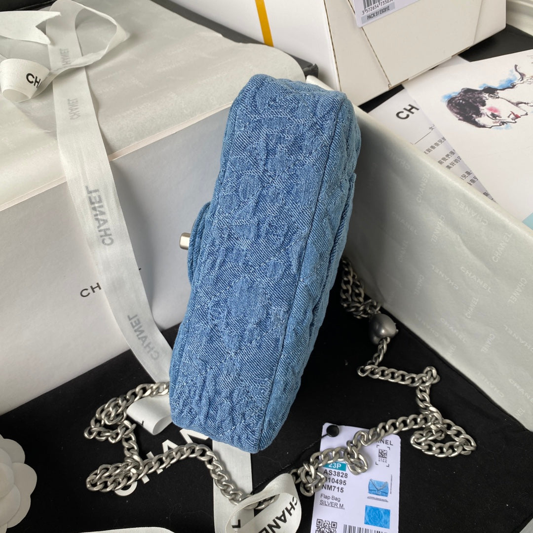 23P Flap Bag 19cm Denim Silver Hardware