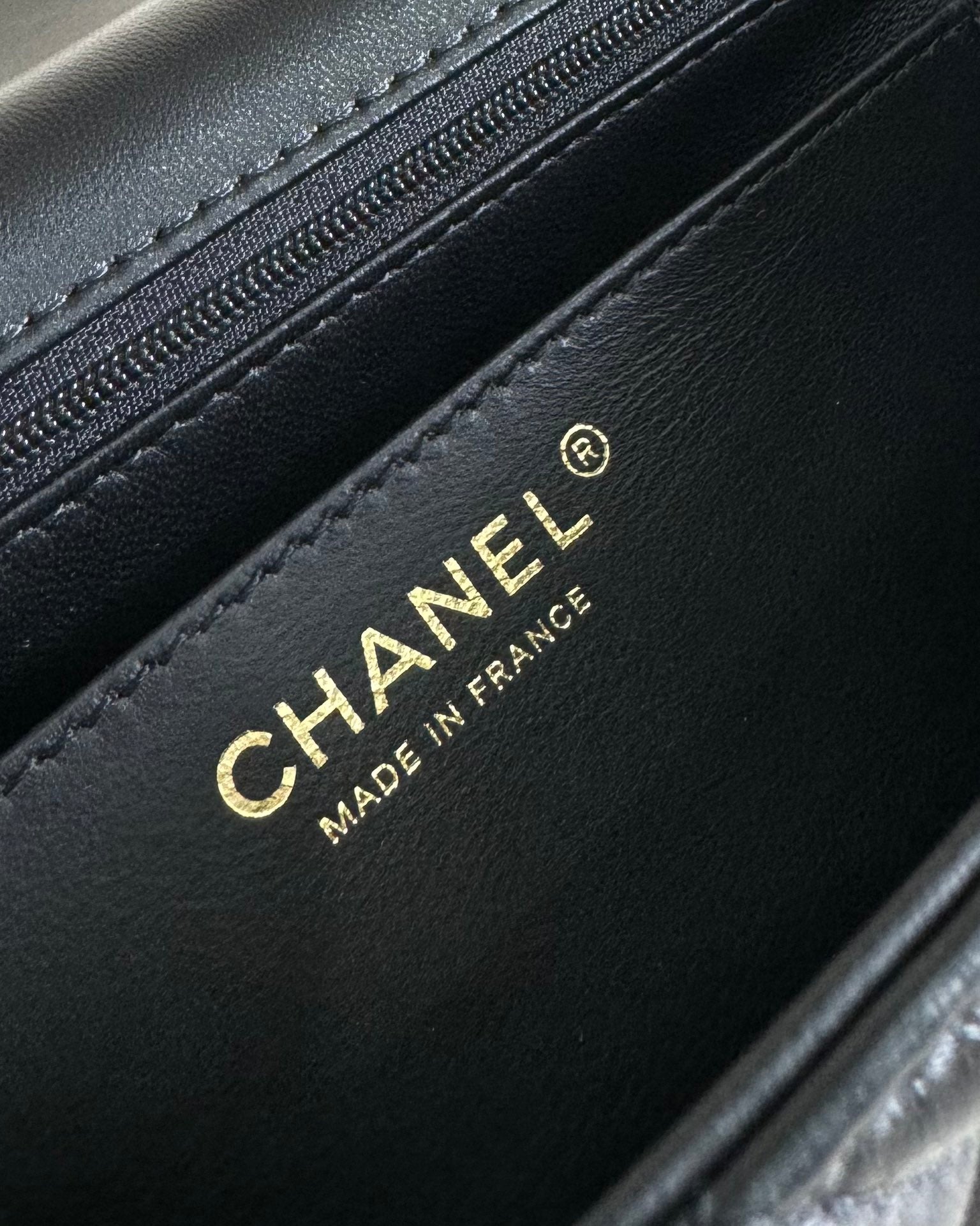 24a mini flap bag top handle 20cm black lambskin silver hardware