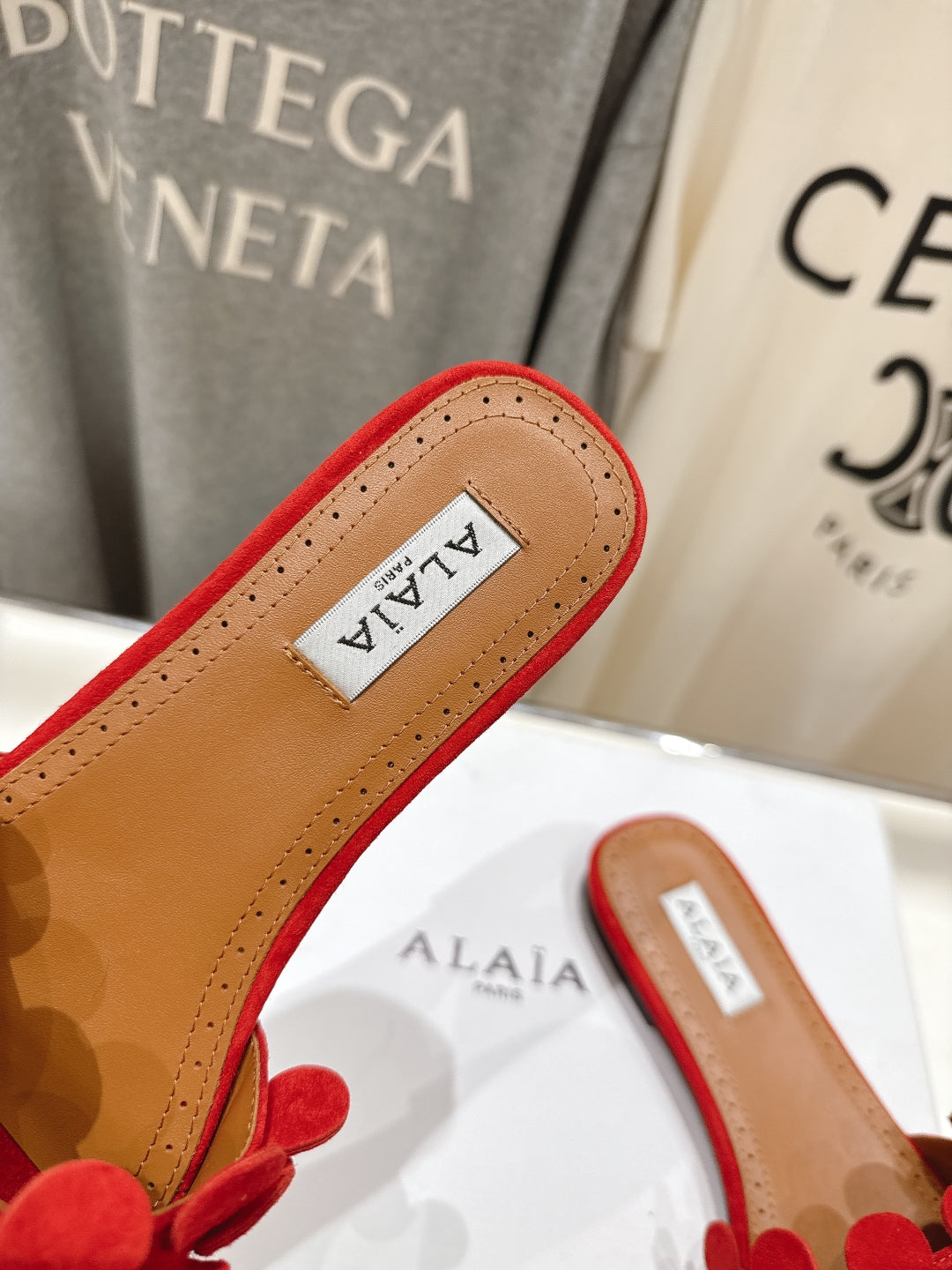 Alaia 25 Flower Slippers Red Sheepskin 302675