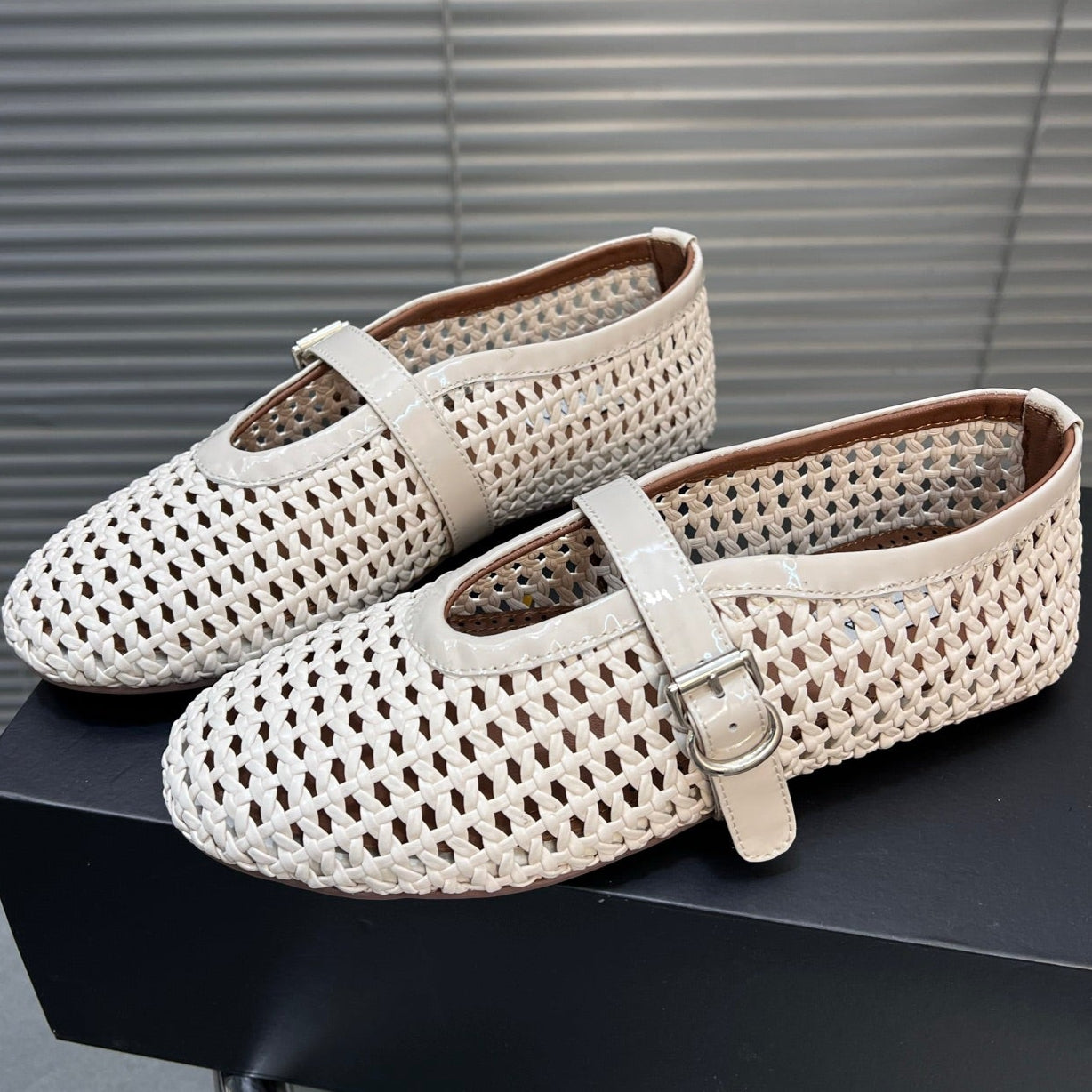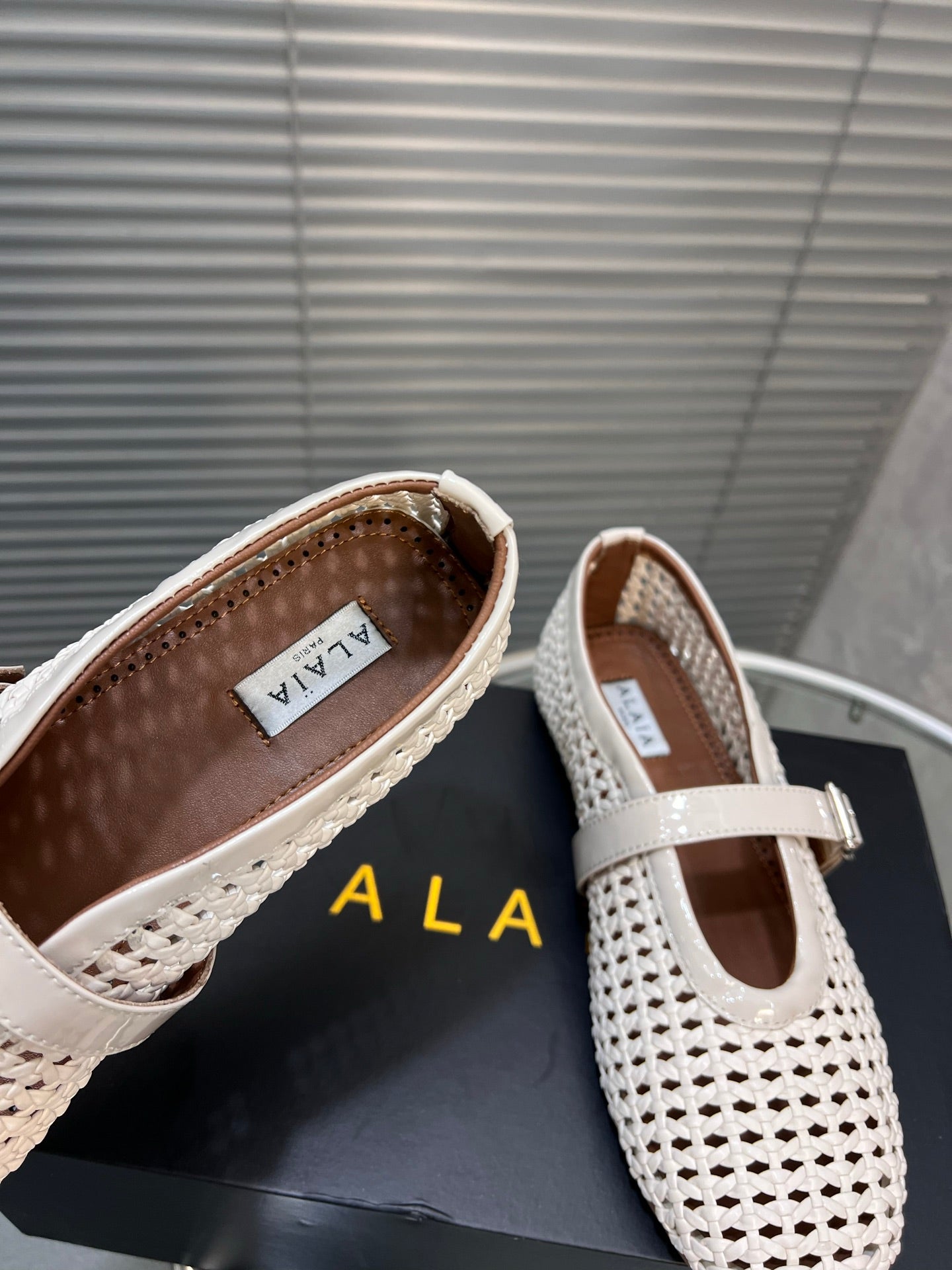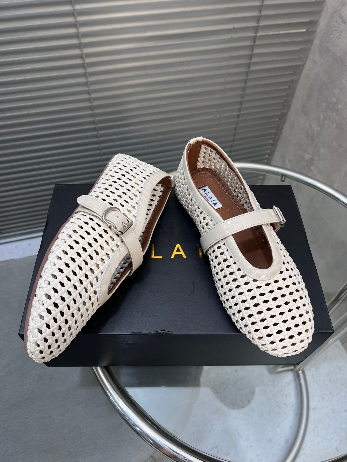 Alaia Braided Hollow Ballet Flats Ivory Cowhide 300043