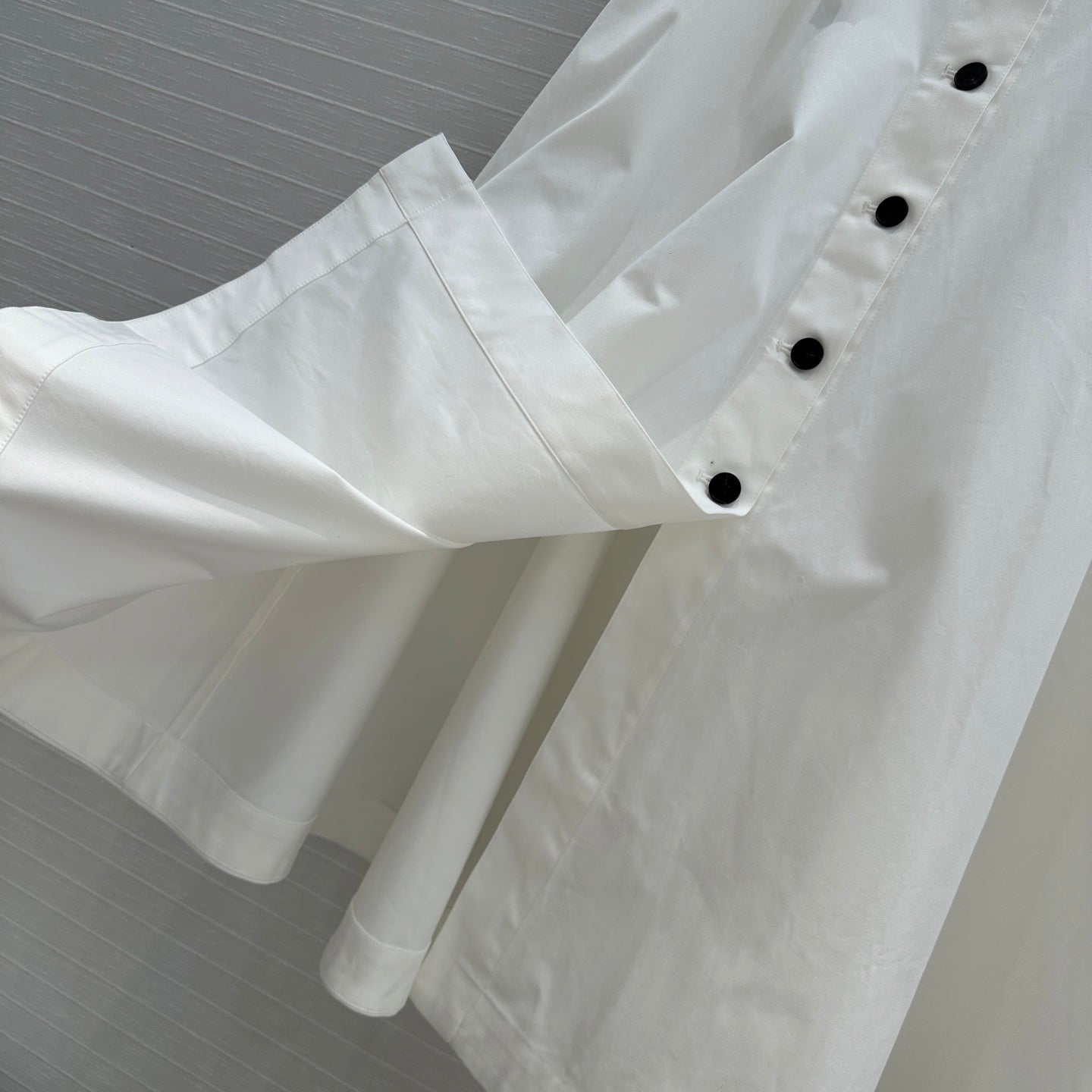 CD 25 Belted Single-breasted Long Skirt White Cotton