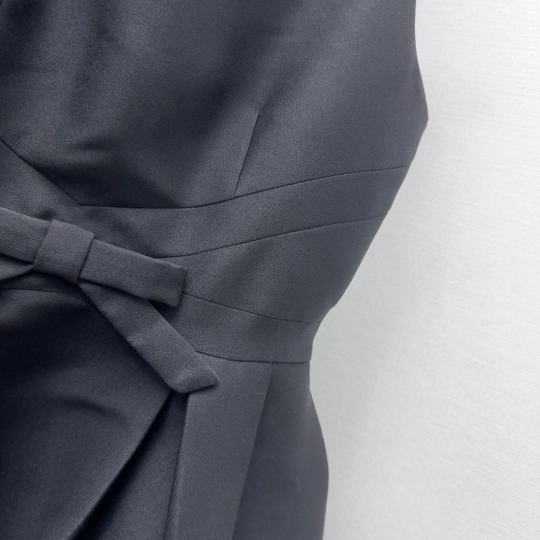 CD 25 Bow Sleeveless Mini Dress Black Satin