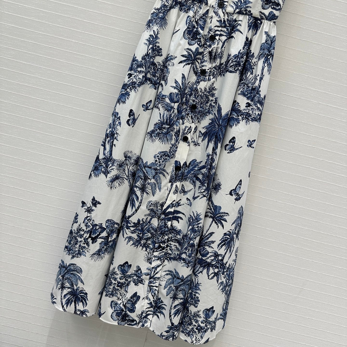 CD 25 Butterfly Coconut Print Tube Dress White Blue Cotton