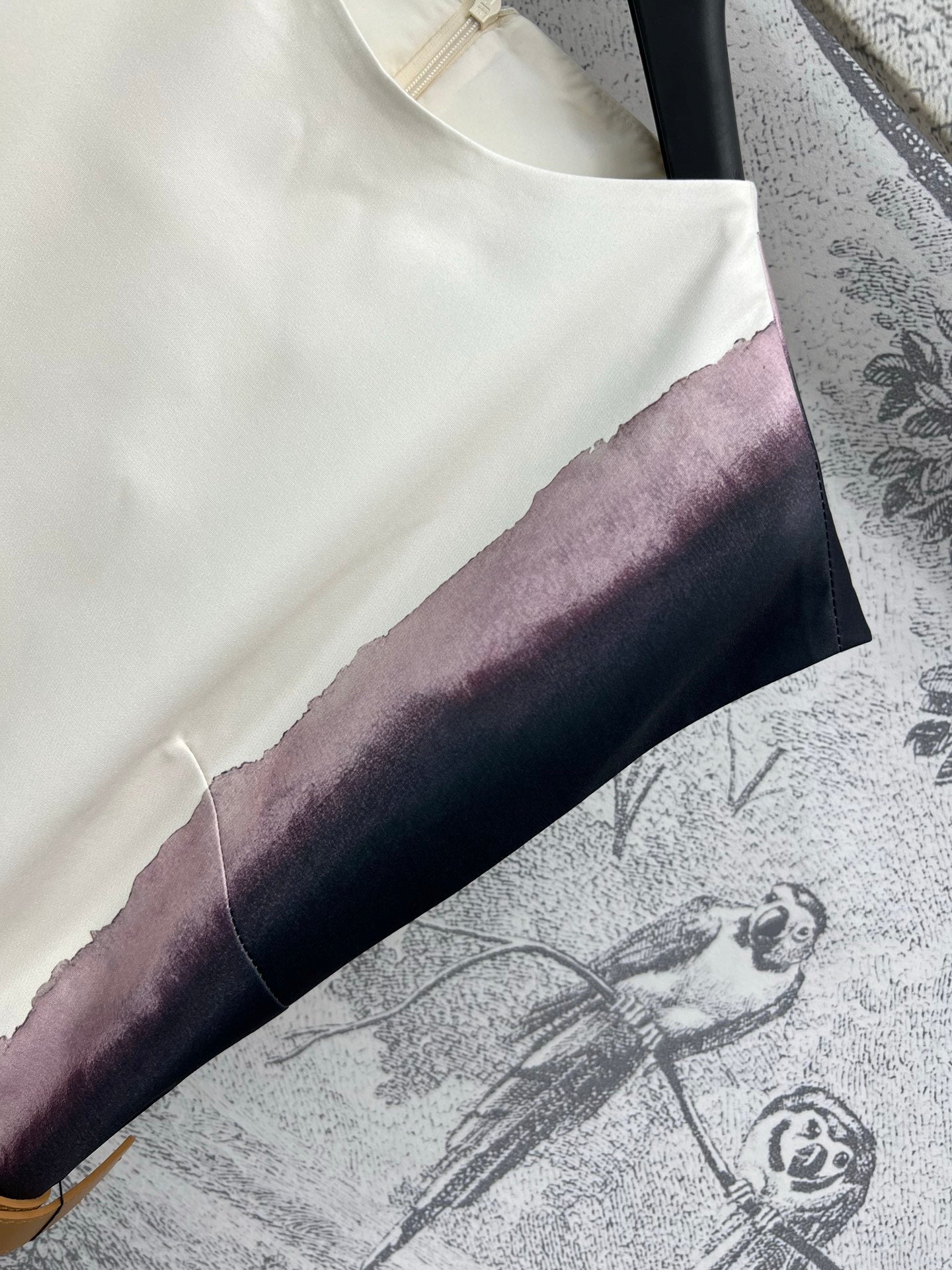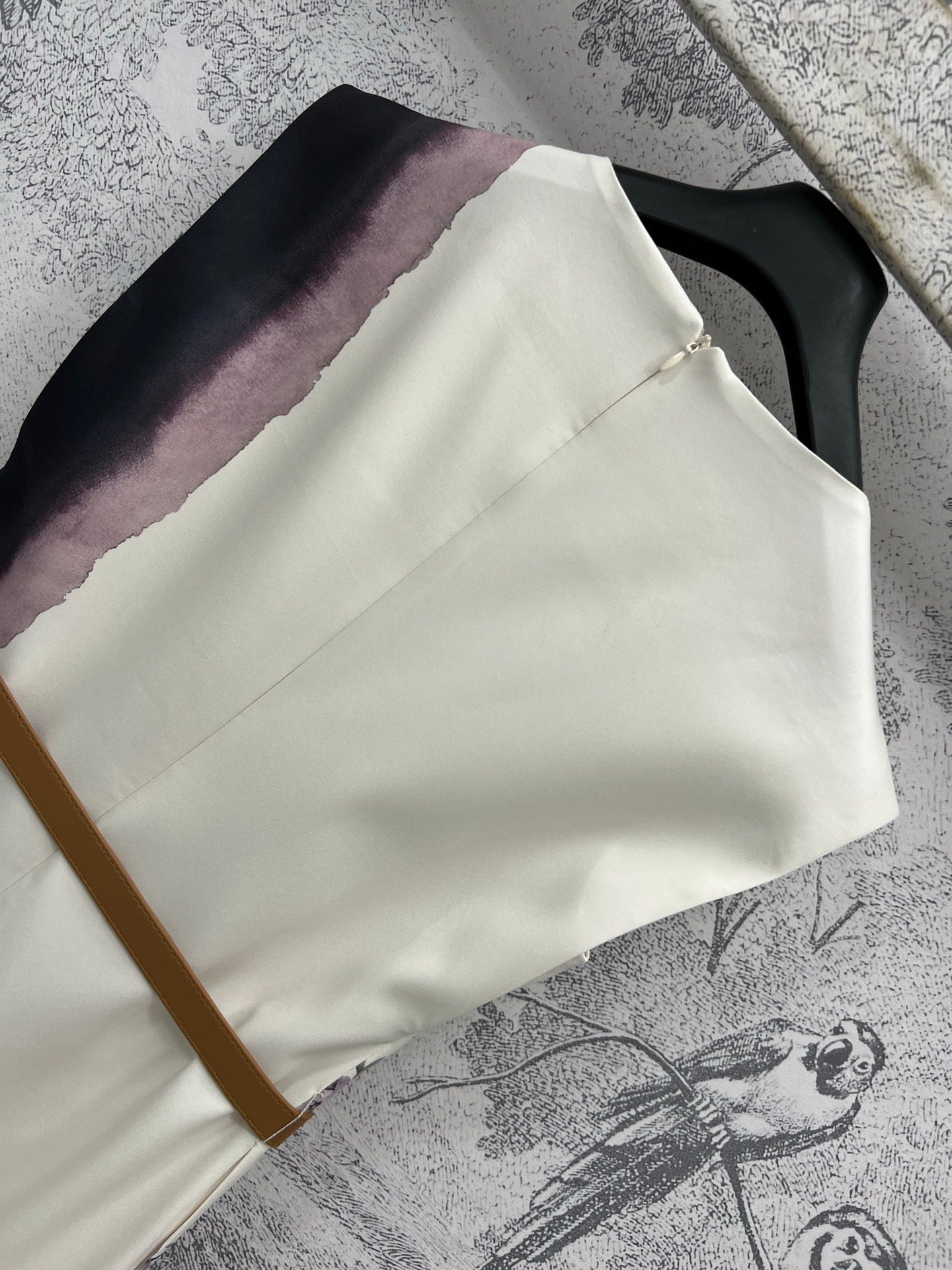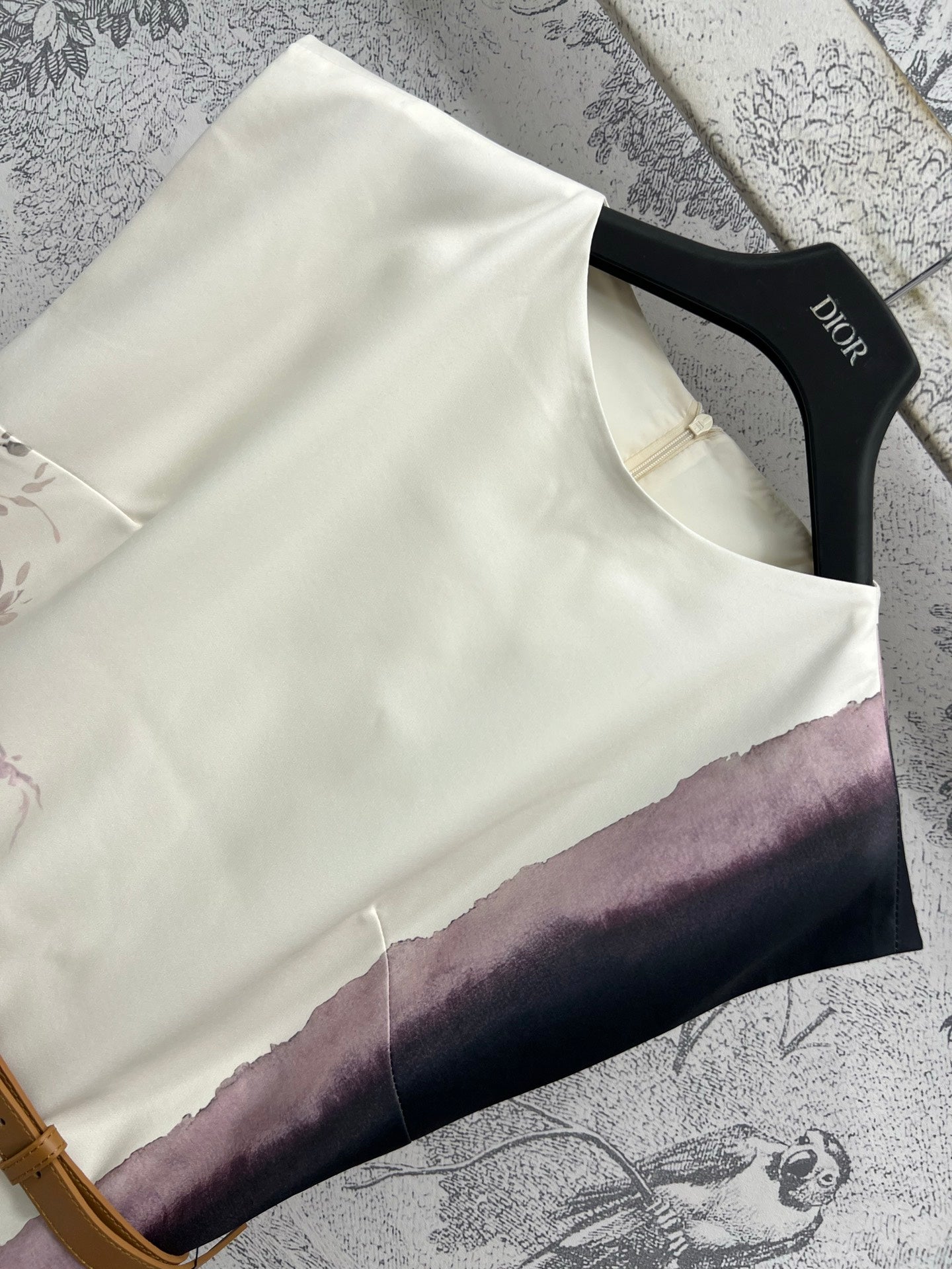 CD 25 Floral Print Sleeveless Dress Beige Silk