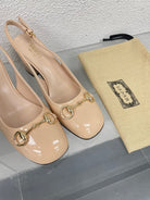 GG WOMEN'S HORSEBIT SLINGBACK 75MM IN TAN BEIGE CALFSKIN
