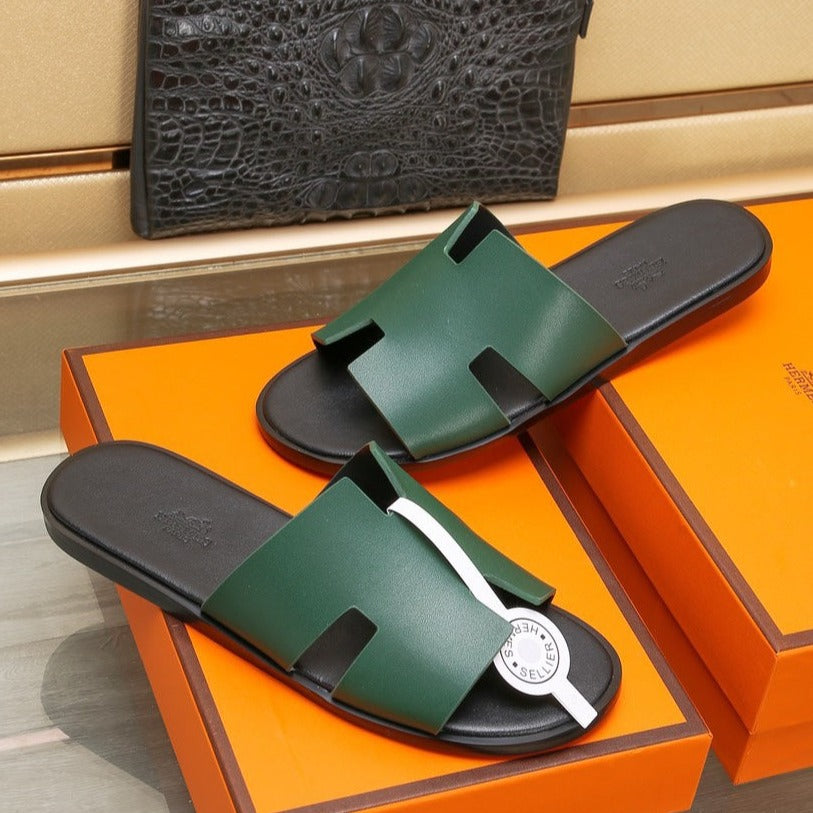 HM IZMIR SANDAL DARK GREEN AND BLACK CALFSKIN