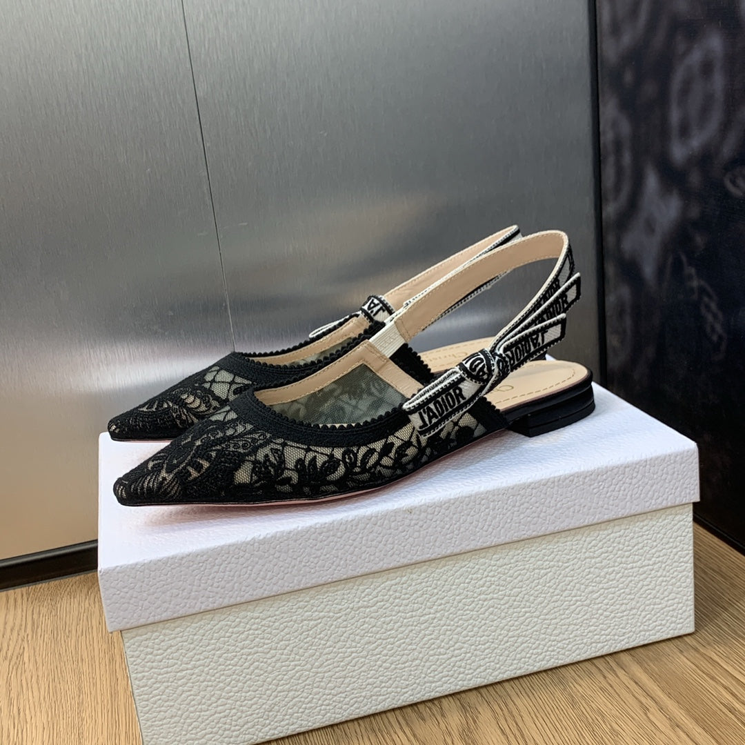 JAdior slingback flat transparent mesh embroidered black butterfly motif