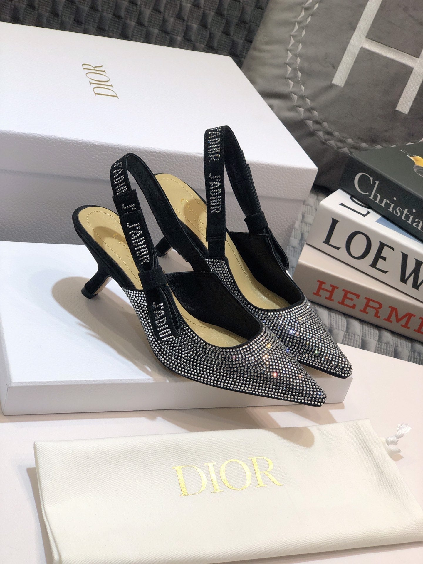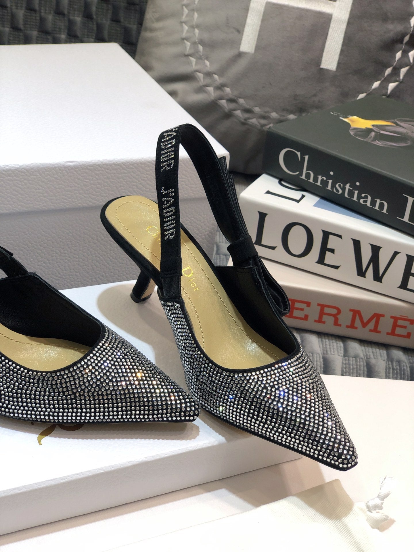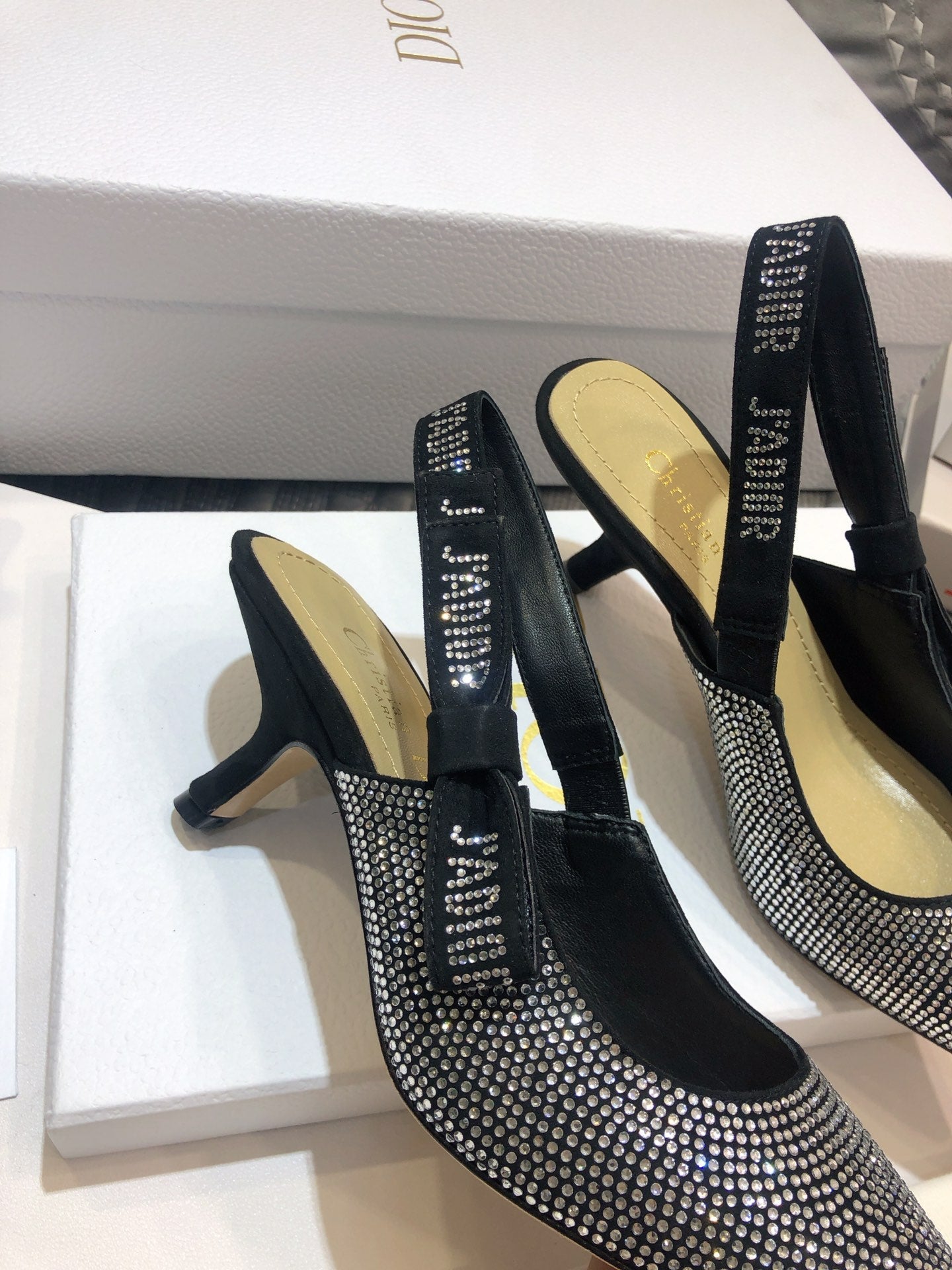 JAdior slingback pump 65 black full diamond crystal and seude