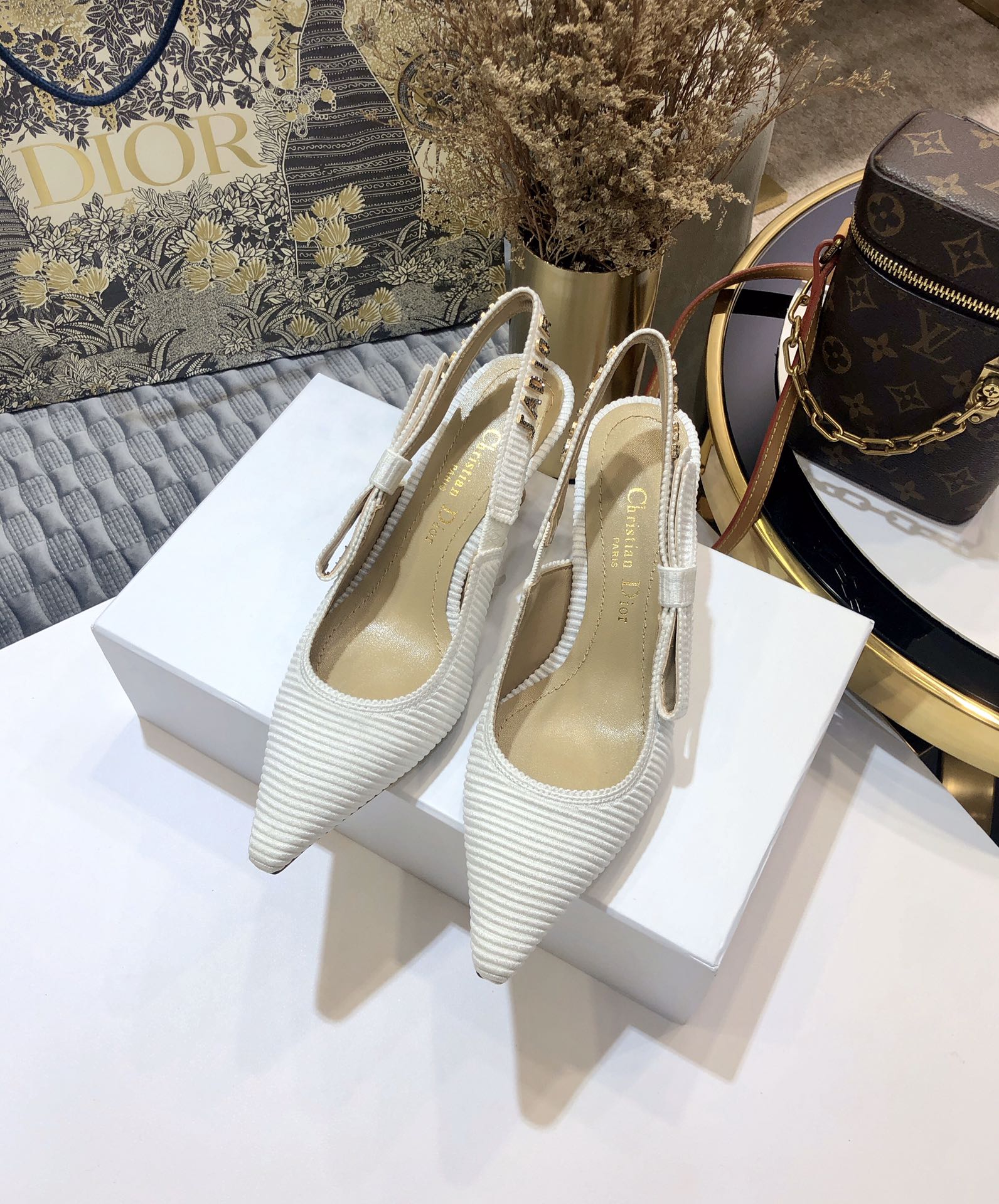 JAdior slingback pumps 65 all white embroidered cotton