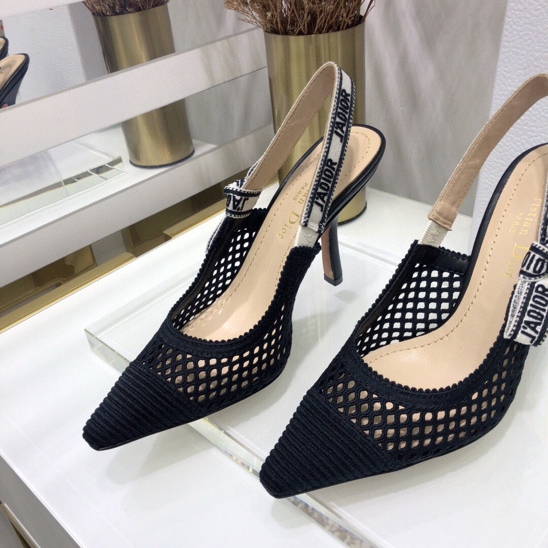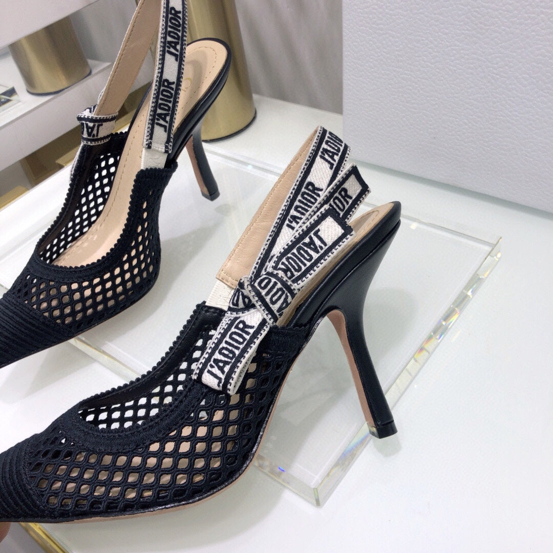 JAdior slingback pumps 95 transparent mesh black embroidered cotton