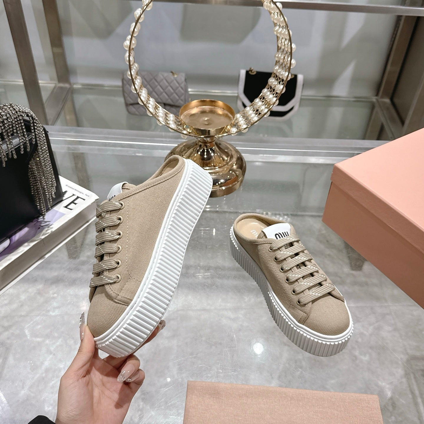Miu 25C Sneaker Mules Colonial Beige Demin Fabric 235319