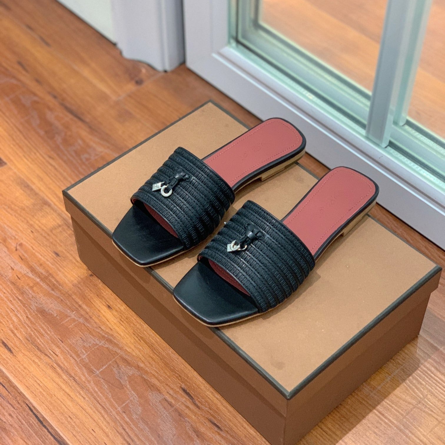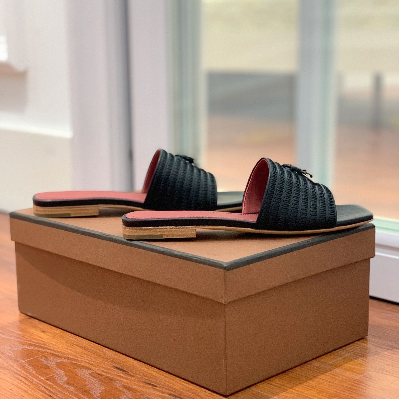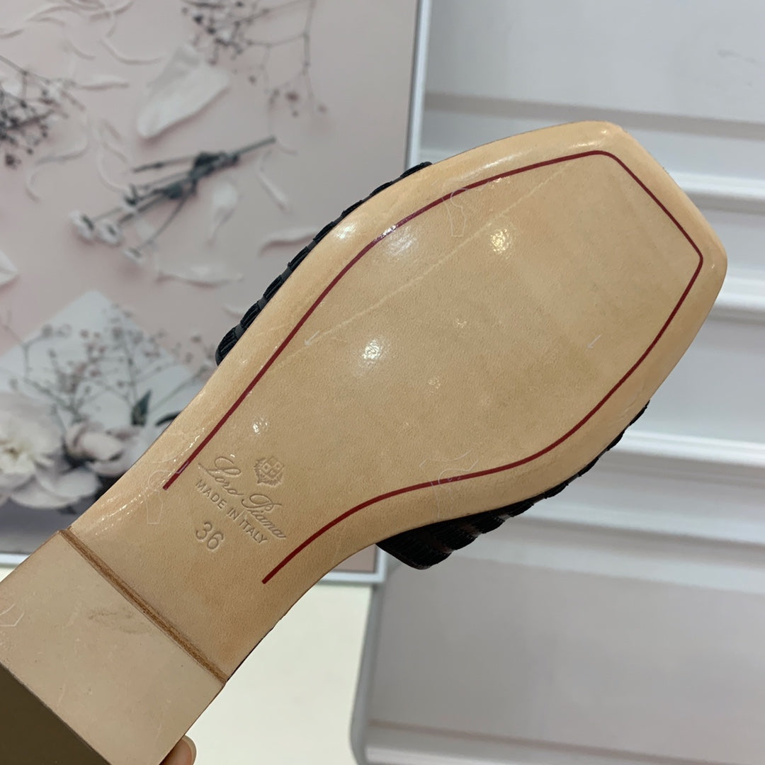 Quare Toe Sprightly Charms Mule Black Marron Calfskin