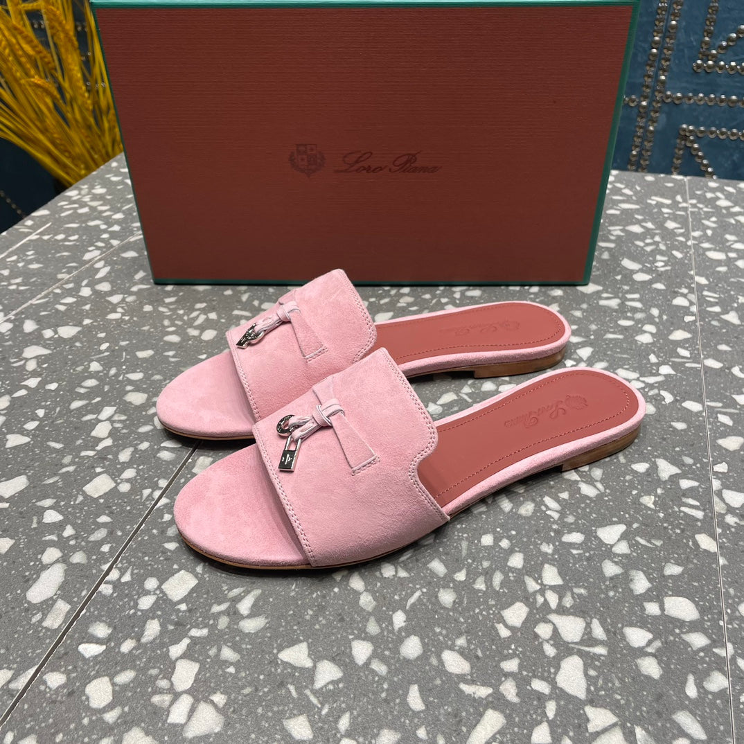 Summer Charms Sandals in Pink Suede Maroon Lambskin